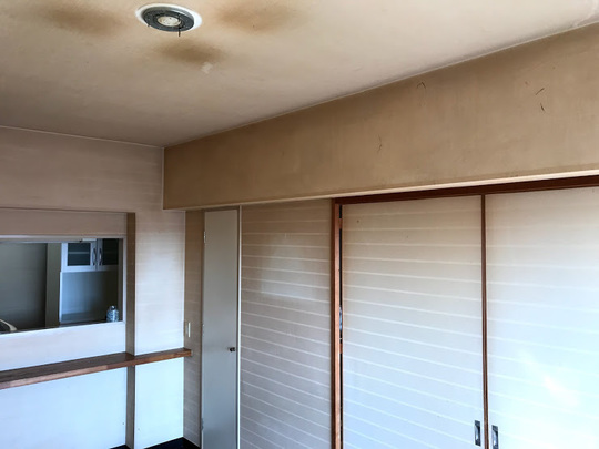 長年のたばこのヤニにより天井も壁も黄ばんでおりました。