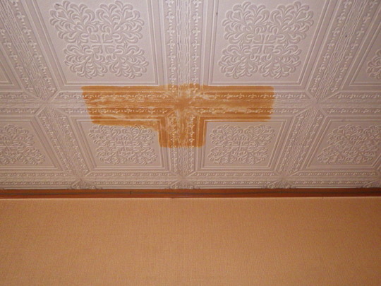 天井のボードも同様にたばこのヤニで黄ばんでました。