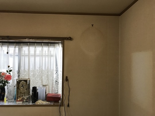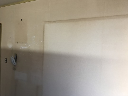また、カレンダー跡や食器棚の後ろは、壁紙が白いので、当時はこのぐらい白かったということです。