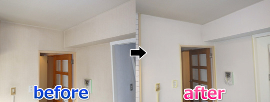 東京都エリアの壁紙リフォームの施工事例です。壁紙リフォームでは、クロスメイク・クロスホワイト(吹付コーティング)・カラーペイント・張替えのリフォーム工法があります。費用相場や施工後のイメージなどの参考にしてください。