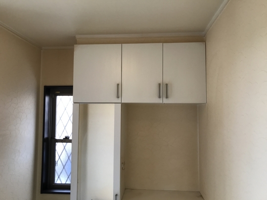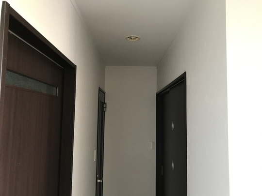 張替えでもよいのですが、今回は既存の壁紙の汚れのみで、ひび割れは剥がれなどなくきれいな状態でしたので塗替え(クロスホワイト)で対応しました。