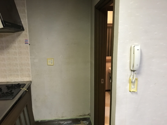 引っ越し前に前の所有者の壁紙の汚れをきれいにしたいとのご要望でした。