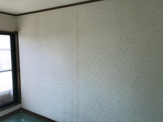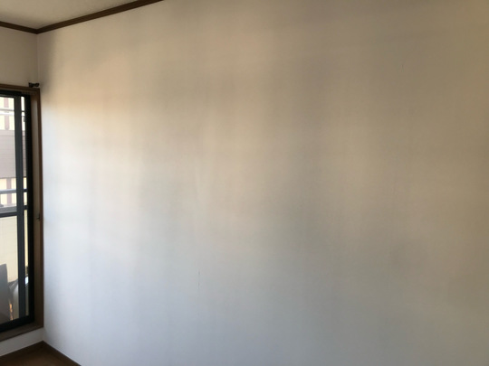 写真のように既存の壁紙には模様が入っておりましたが、施工後は真っ白キレイな壁紙に
