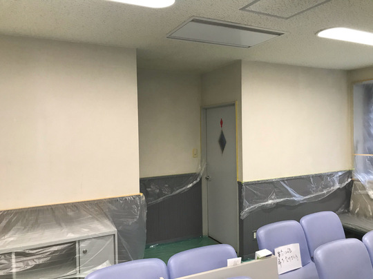 通常営業がありますので、休診日に2名体制でクロスメイク施工をしました。