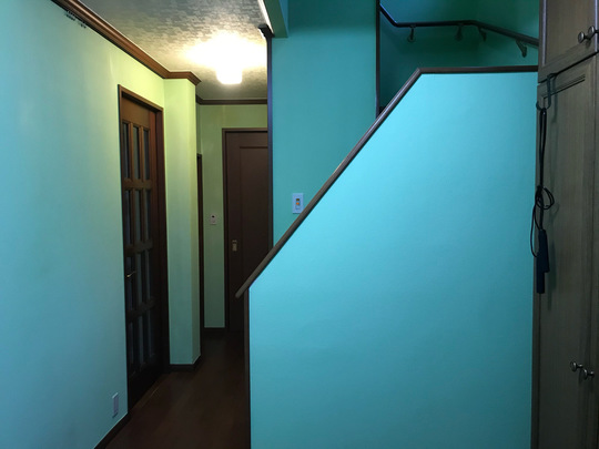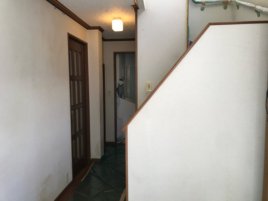 汚れた廊下、階段周りの壁紙も・・・
