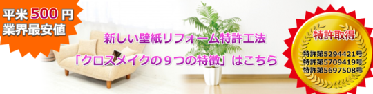 当社のクロスメイク施工料金は、壁紙の張替えの相場費用の約半額です。